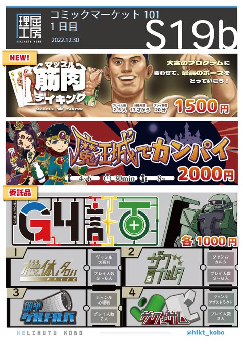 そういえば、お品書きを出しそびれてたので! マッスルテイキングおよび、G4計画がメインになります! #C101 #コミックマーケット101