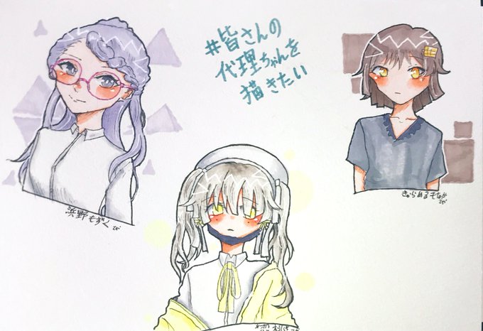 #皆さんの代理ちゃんを描きたい たいっっっっへん長らくお待たせしました 浜野もずく様、恋桃様、きゃらめるもなか様の代理ちゃん達を描かせていただきました!! アナログになってしまってすみません🙇♀️🙇♀️