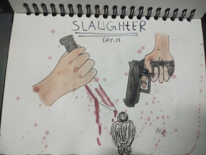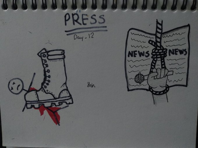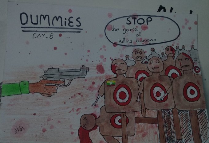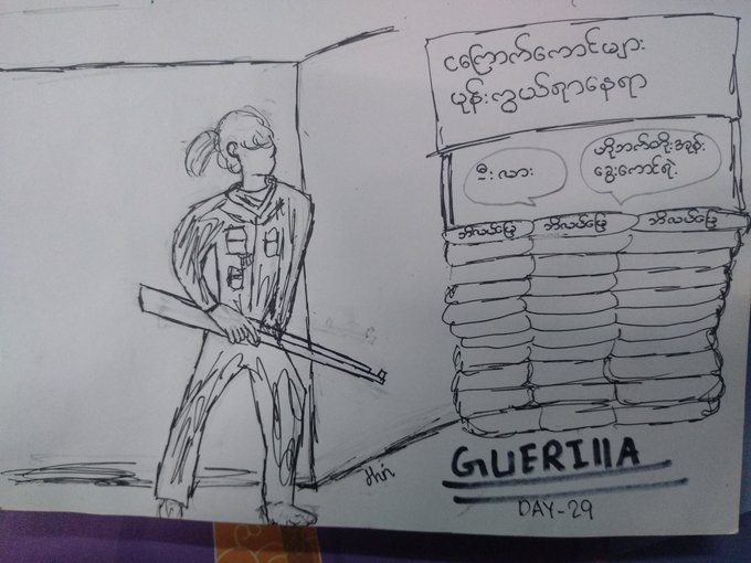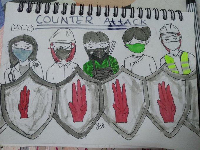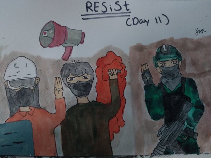 Day 9- Civil disobedience Lighting in the photo is so dark, I think you need your mom's phone•‿• #Revotober #Inktober #WhatsHappeningInMyanmar (Beginner) destroyed because the water spilled🙏