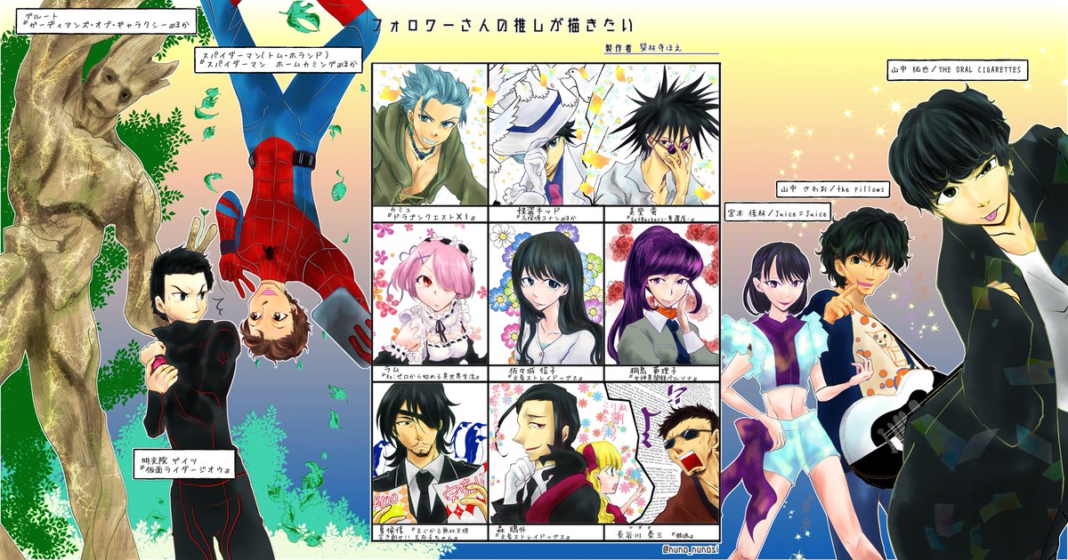 #フォロワーさんの推しが描きたい 大変お待たせいたしました!!2次元・2.5次元・3次元というジャンルと、女の子とイケメンとオッサンという見た目バランスがとても良い感じにリクをいただけたので、とても楽しかったです😘
