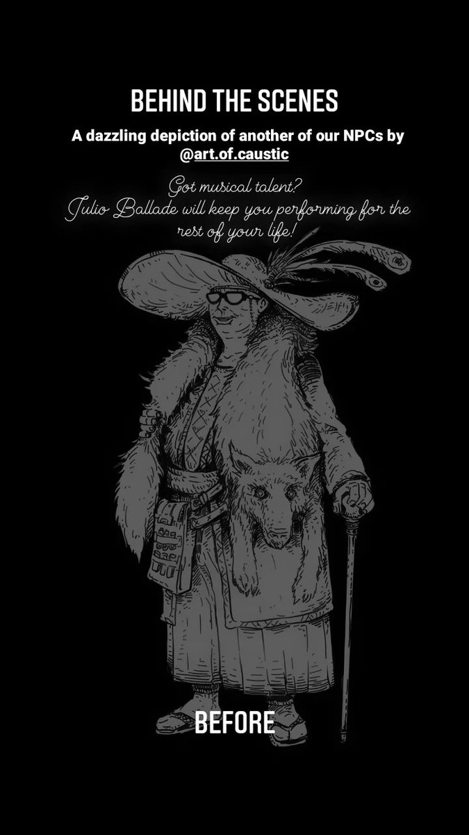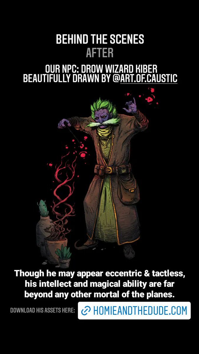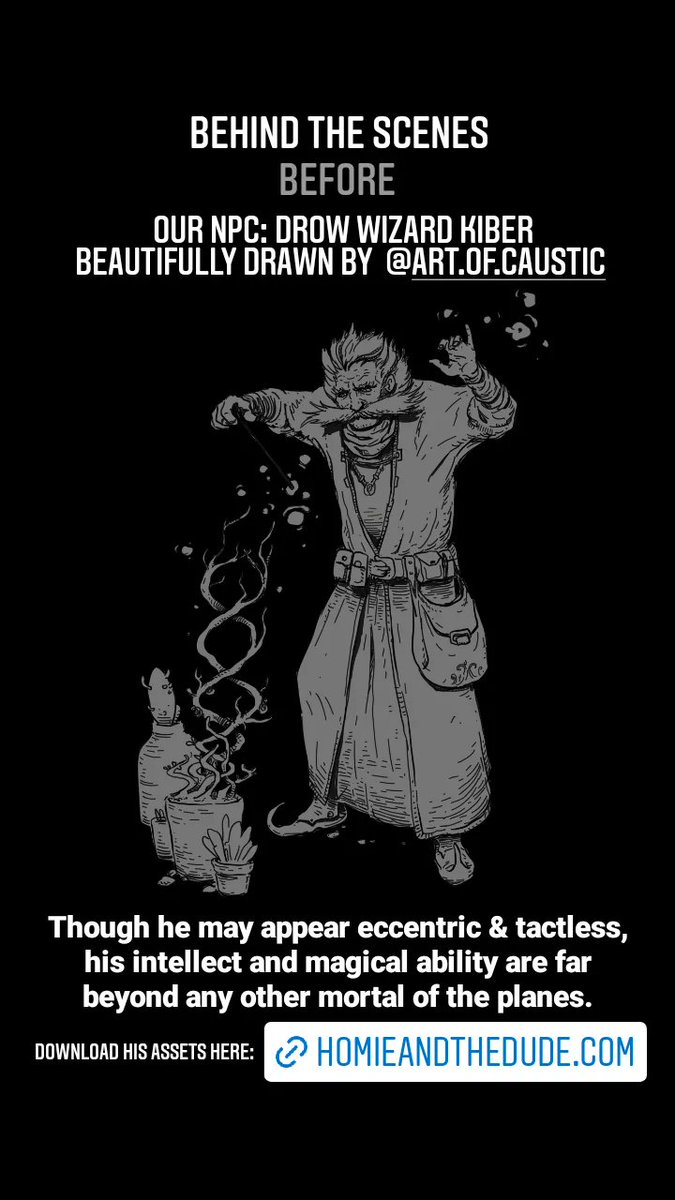 Today's BTS shows a little before and after image of our NPC Kiber. Send some love to @OfCaustic for his awesome artwork! #dndart #NPC #ttrpgfamily