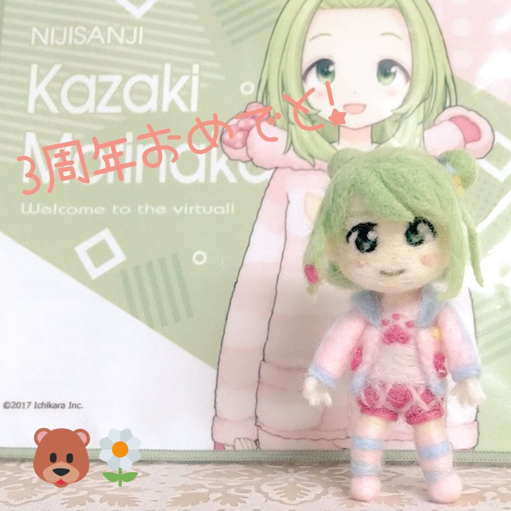 17 46 かざちゃん3周年おめでとう!&ハッピーホワイトデー! #森中びじゅつかん #にじさんじ手芸部 #羊毛フェルト 21/03/14 13:28