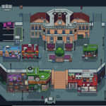 Almost done with my city artwork in #pixelart, been quite some hours since i started ! Still a few colors left and then i create some characters : D