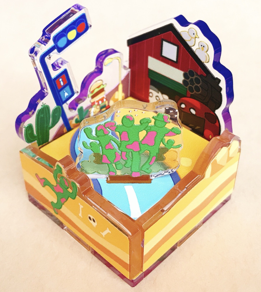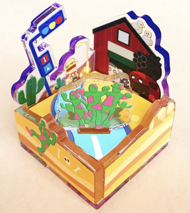 舞台観劇記念のアクリルジオラマドームを新たに作りました!内臓を揺さぶられるすばらしいお芝居でした・・・ これで観劇ジオラマは3つめ グラスを被せた上にseriaの引き出しの取手を付けてます。アクリルはYousei印刷(@yousei_info)さん #セールスマンの死 #INTOTHEWOODS #スリルミー