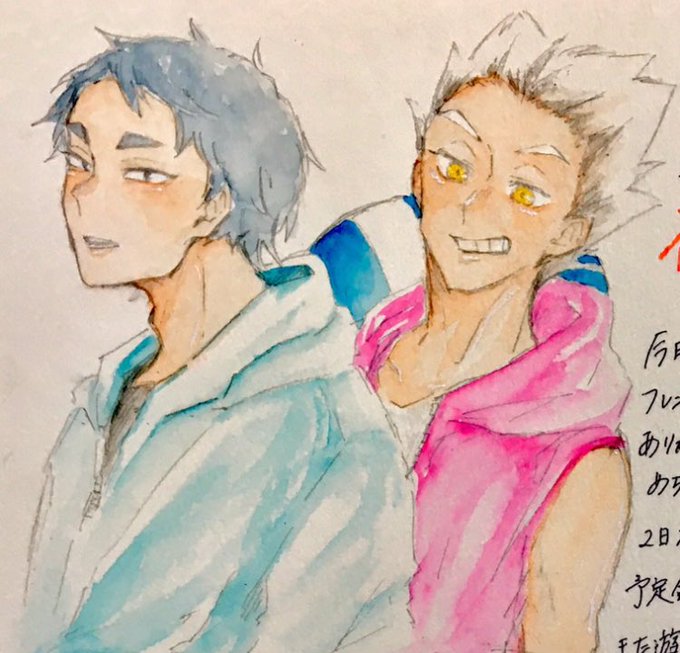#8月19日はハイキューの日 #ハイキューの日2019 アニメも本編もステも まだまだ翔ぶ彼らの活躍を応援して! アニメ1月放送決定おめでとうございます!これからも大好きです!!! 去年に比べて透明水彩による色塗りを覚えた町田🥰