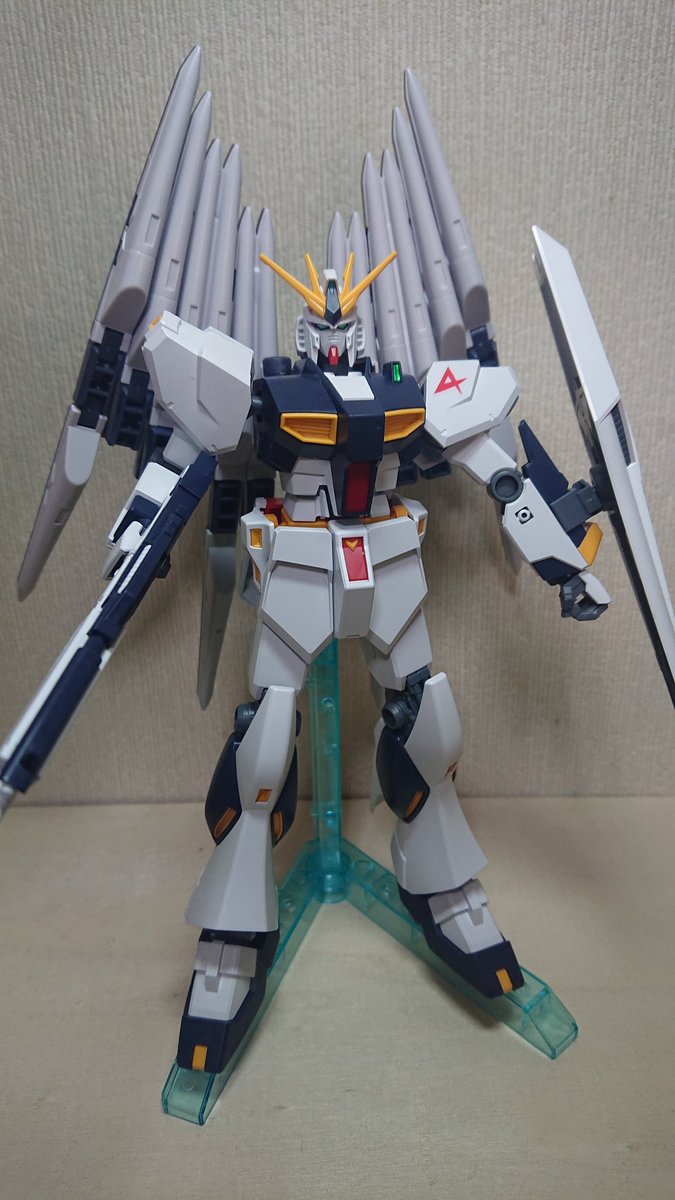 EGのνガンダム出来ました! フェイクニューウェポンズでファンネルとバックパックがやや小さいけどそれっぽく仕上がりました。 #ガンプラ #ガンプラはどんな自由な発想で作ってもいいんだ #ガンプラの画像貼るとRTされると聞いて