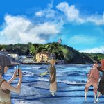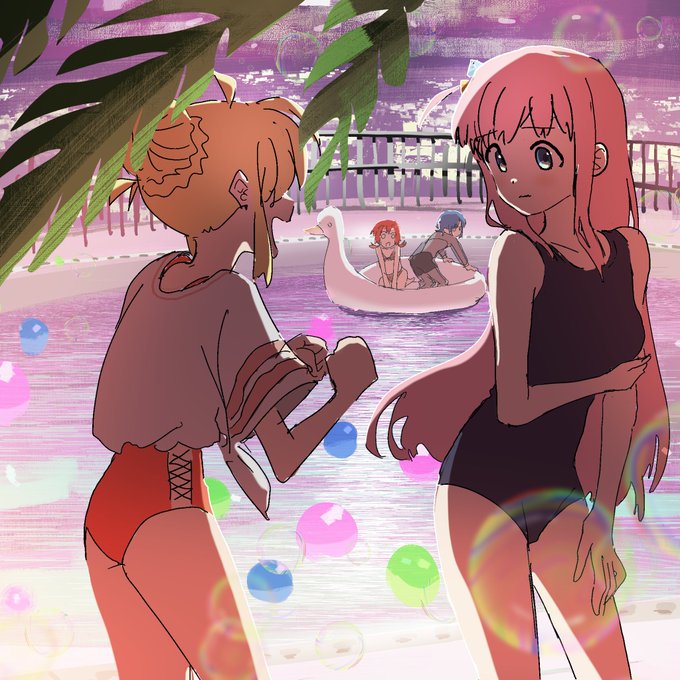 結束バンドの4人でナイトプールに行ったらぼっちちゃんだけスク水持ってきた時の絵