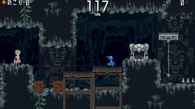 1 1 今作っているアクションパズルゲームのダンジョンステージを仮り置き。#HSP #ドット絵 #pixelart 21/07/23 14:07