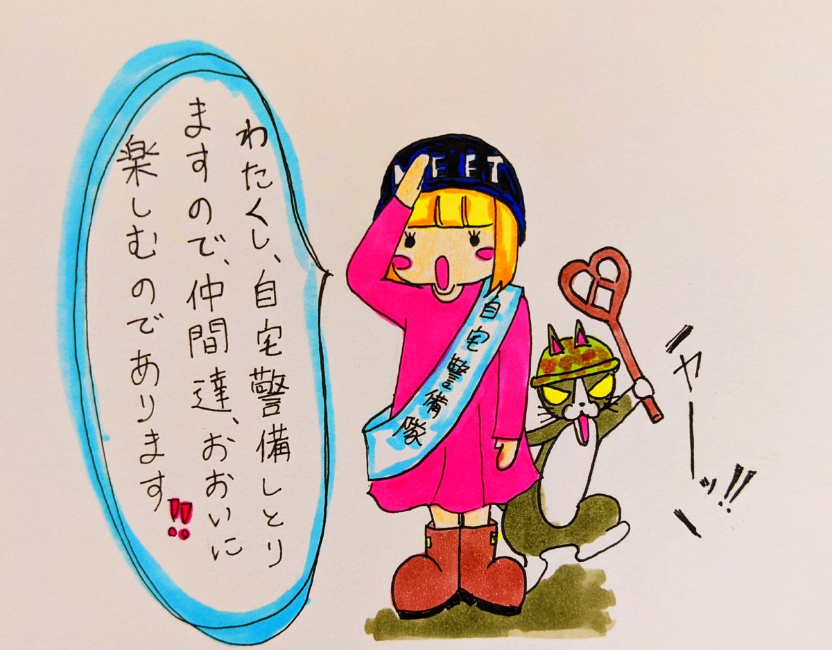 今日もテンション上げていこう!! #イラスト #オリジナルキャラクター #キャラクター #猫がいる暮らし #Illustrator #コピック #絵描きさんと繋がりたい #イラスト描く人と繋がりたい #猫 #野良猫 #私とノラ