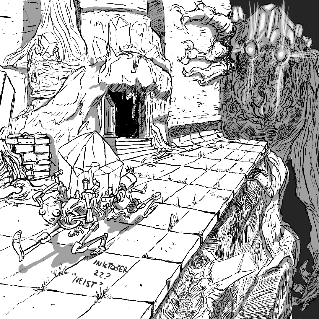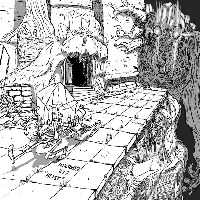 Accidentally skipped an #inktober prompt - #heist - those crystals were not for sale... #inktober2022
