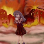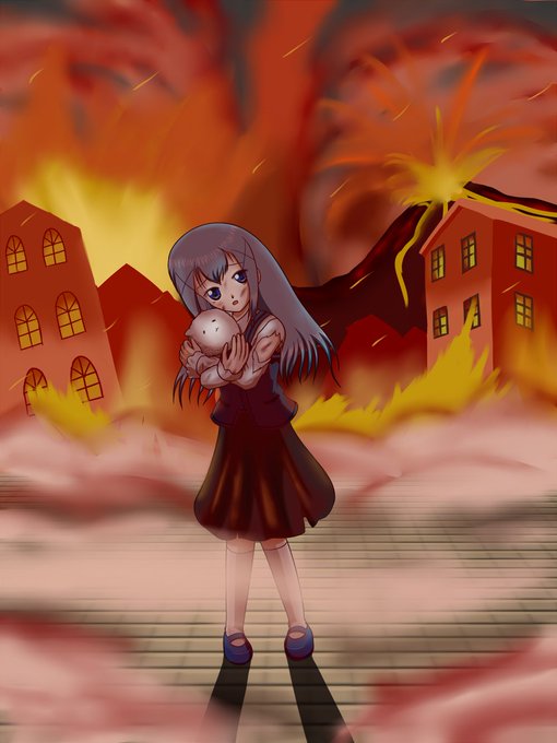 ランダム過去絵。 コンセプトは赤と青の対比です。 赤い空と青い瞳。 赤い血と青い空。