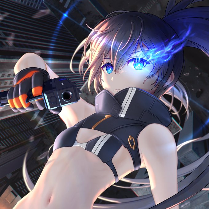 #今月描いた絵を晒そう 一枚描くのに ラフ・下書き 5日 キャラ線画 1日 キャラ塗り 8日 背景線画 4日 背景塗り 4日 エフェクト 3日 計25日で150時間くらいかかってるから1枚だけ #ブラックロックシューター #BRSDF