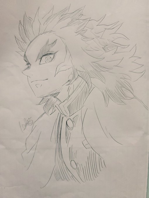 小2の息子が頑張って初めて描いた煉獄さん 皆さん褒めてあげて下さいm(_ _)m