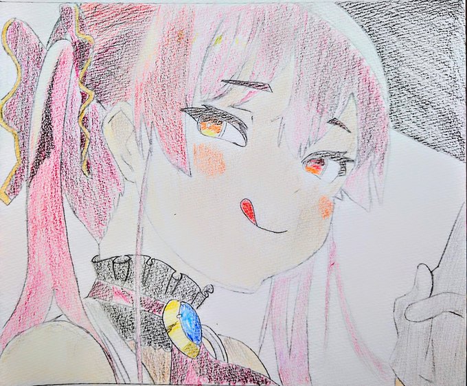 やっぱこの絵が1番描きやすい!!! 右が元絵! #マリンのお宝