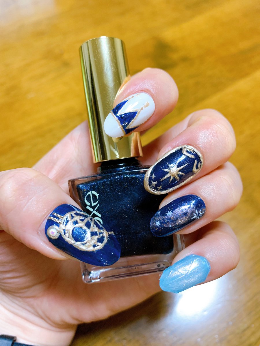 第9弾はイベント「星に願いを」🌌🌠 1年前のイベントですが時期的にはピッタリでしょ?笑 ハロウィンを超えた私史上最高難易度でした…細すぎてデザインの完全再現は無理でした🤣💦 #ツイステファンアート #哀汰のツイステネイル