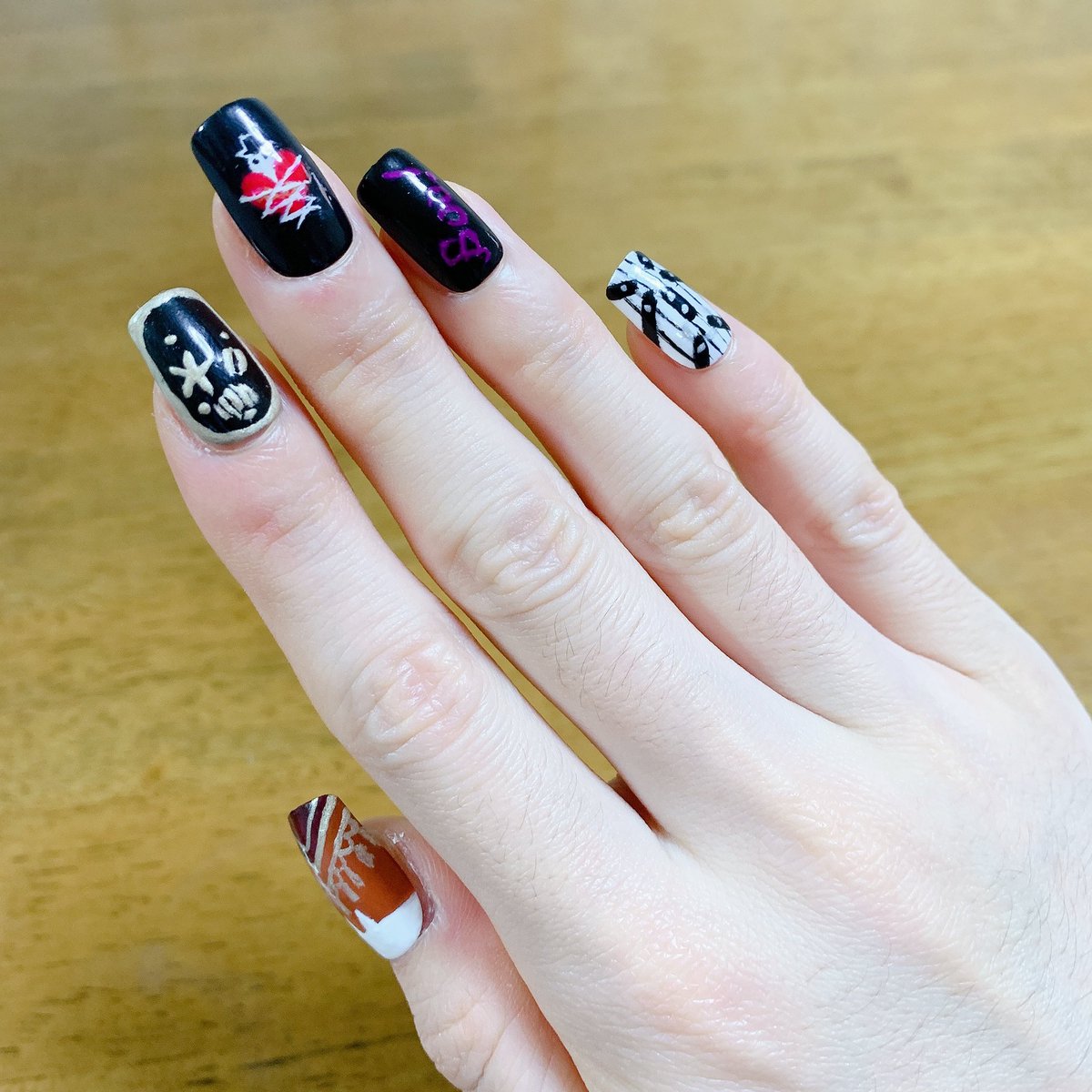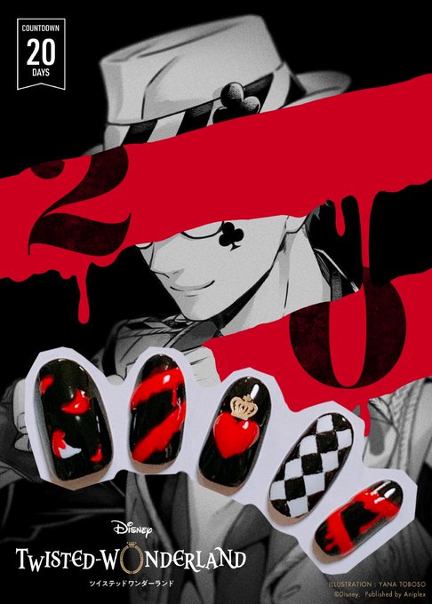 やってみた第2弾!ハーツラビュル寮❤️前回同様全て柄は手描きです💪✨カウントダウンイラストと寮服どちらもモチーフたくさんあってデザイン決めるのめっちゃ迷ったけどいい感じにできて満足🥰 #ハーツラビュル #ツイステ #ツイステファンアート #哀汰のツイステネイル