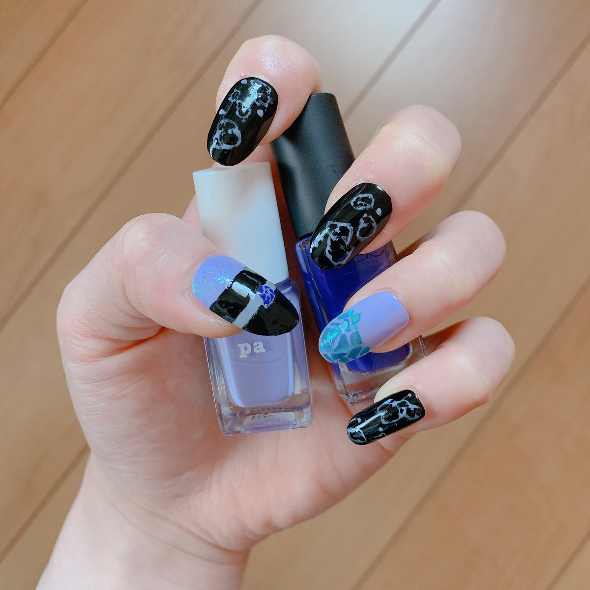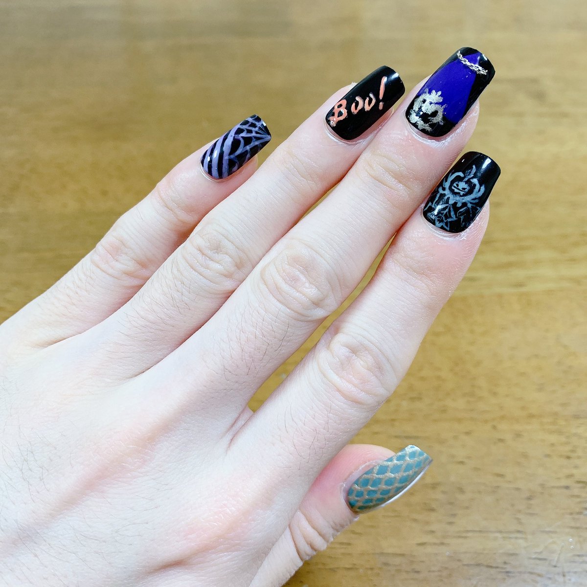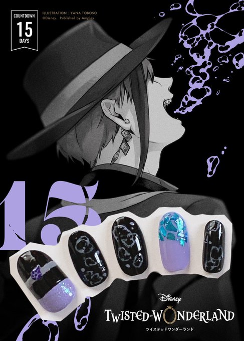 第4弾はオクタヴィネル寮🐙今までで一番カウントダウンイラストの柄再現が難しかった…💦薬指は双子🐬🦈のピアスをイメージしたシェルを。🦈に「キラキラじゃ〜ん✨」って言われたい(笑) #オクタヴィネル #ツイステ #ツイステファンアート #哀汰のツイステネイル