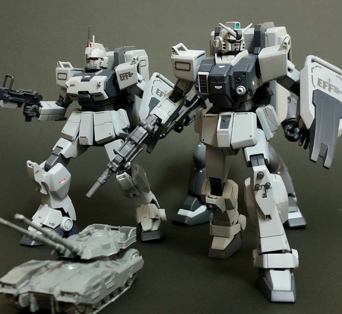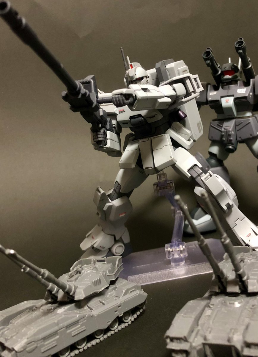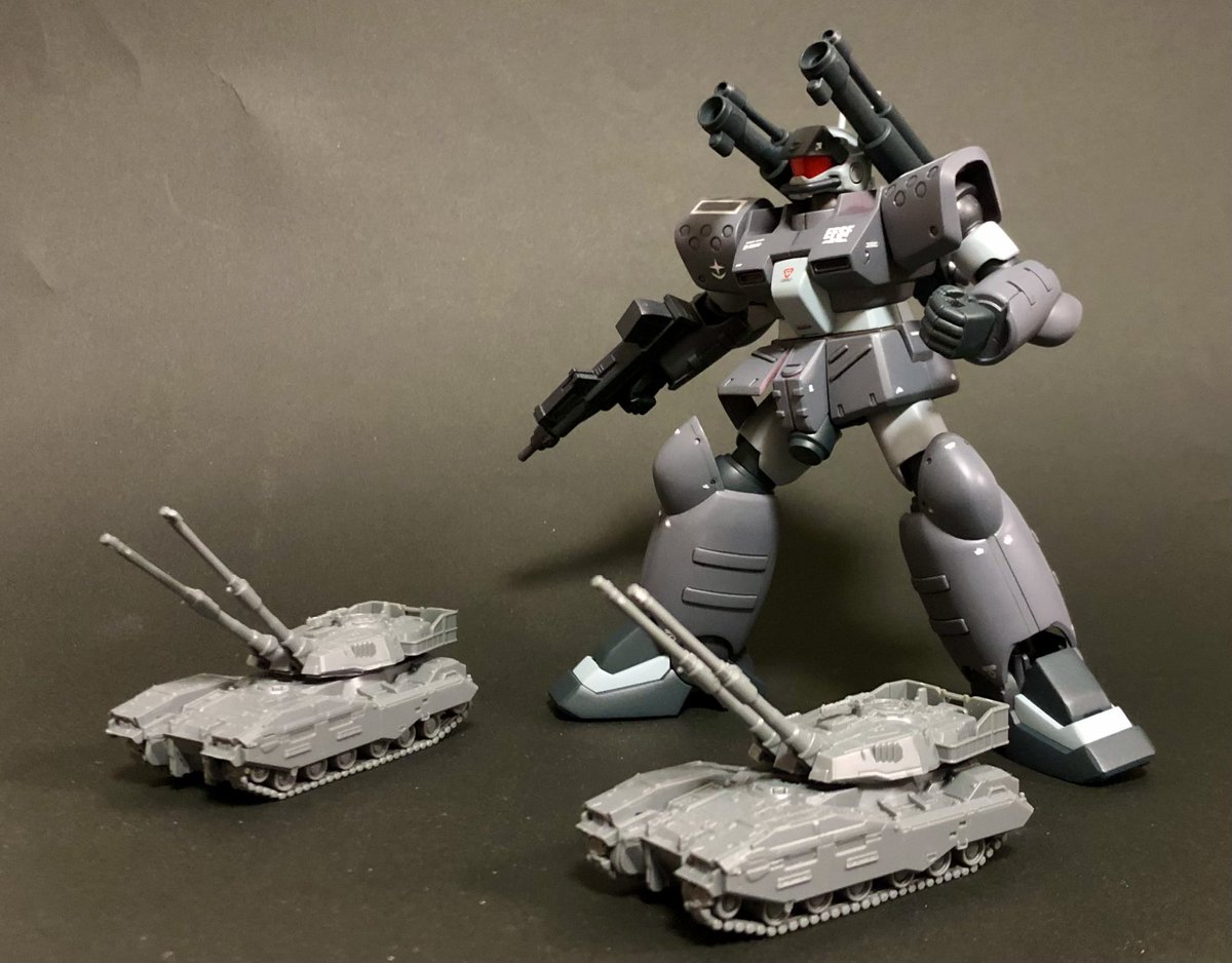 Ez-8完成しました!👏 設定よりグレーっぽく塗装。完全に好みで配色を決めました。パーツは陸ジムや陸ガンも組み合わせてます。 2枚目の写真はこの前作ったガンキャノンと61式戦車と一緒撮って賑やかに。陸上部隊感がでてたら嬉しいです。 #ガンプラ #ガンプラの画像を貼るとRTされると聞いて