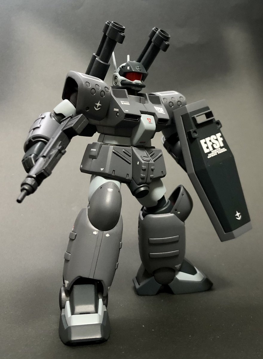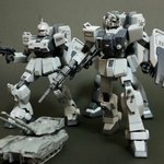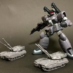 ガンキャノン量産型が完成しました!!グレーで仕上げました。 膝が左右に回るので、ポーズが決まりやすい✨ シールドを装備した写真と、61式戦車と一緒に戦う写真です📸 #ガンプラ #ガンプラの画像を貼るとRTされると聞いて
