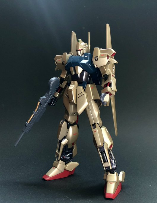百式が完成しました!!!!✨✨ MSの中でもトップクラスに好きな機体…!! 今回は少し落ち着いた金色で塗装しました。デカールは少なめで。 光を照らして撮影📸 #ガンプラ #ガンプラの画像を貼るとRTされると聞いて