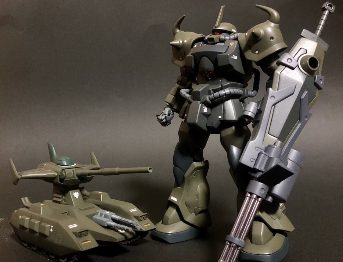 グフカスタムと、マゼラアタックが完成しました!✨地上攻撃セットです! 年末〜年始にかけて作ってたグフカスタムを、時間があったので今日仕上げましたヽ(´▽`)/ ミリタリー色のグフカスタムを作ってみたかったのです! #ガンプラの画像貼るとRTされると聞いて #ガンプラ
