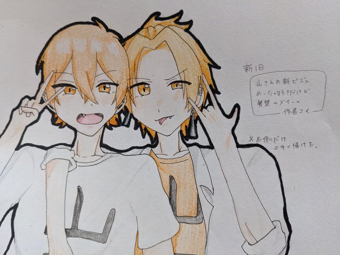 山さん新旧🗻 あれ…旧山さんの方が描くの得意なはずなのに…今日ミスった…何故か今日だけは新ビジュの方が上手くかけたわ。 #メメリ絵