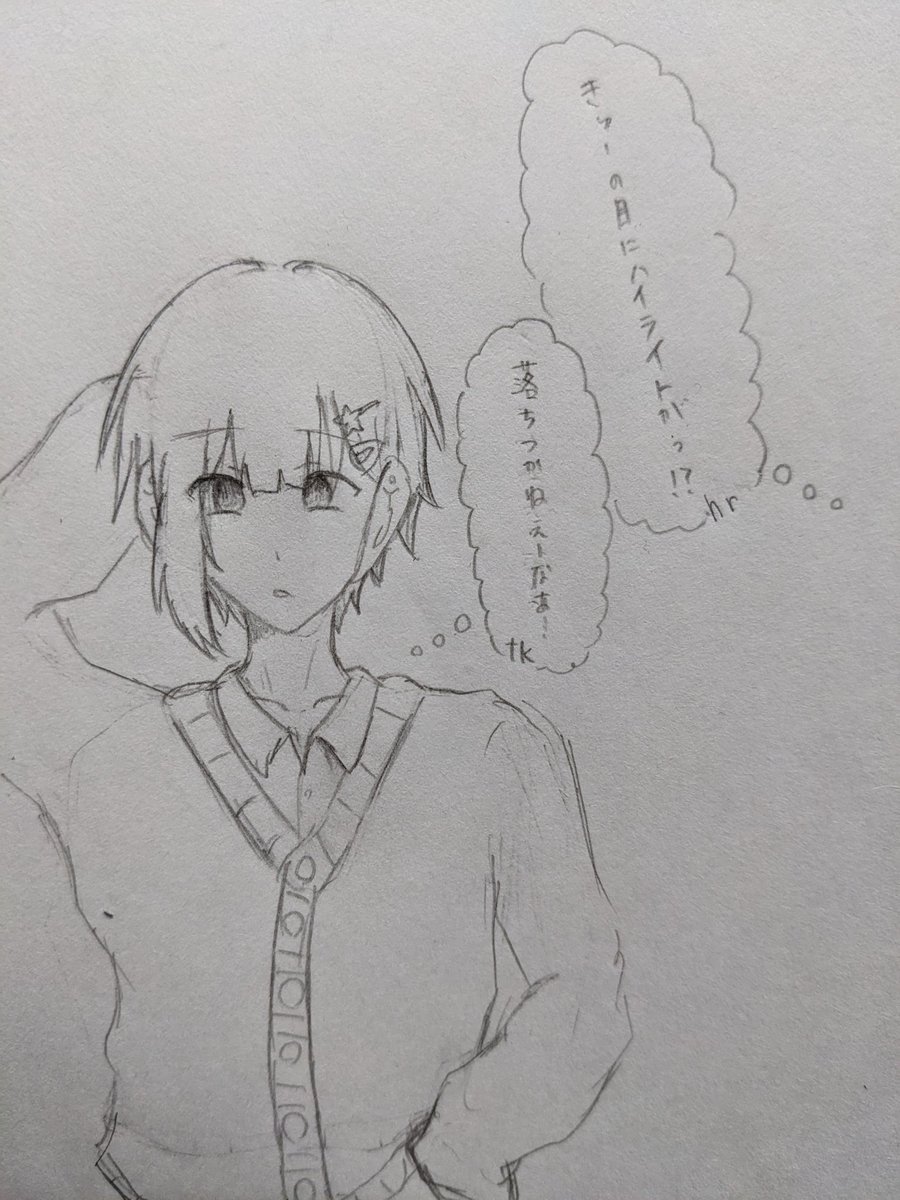 🎧⇄💫 tk『落ち着かねぇーなぁ…』 hr『キューの目にハイライトがないっ!?』 #メメリ絵