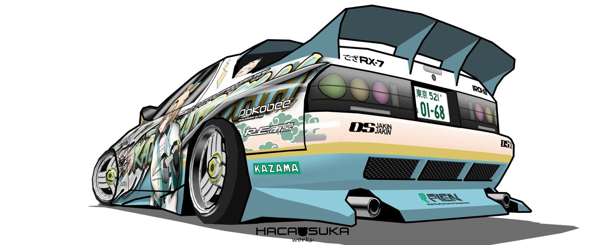 Its been 3 month since I started this project and had an idea I wanted to do. I always loved the idea of trying to do my own itasha one day and well this is how it came to be. Introducing the Gozarex-7. A Mazda RX-7 FC sporting the New Hacaosuka Works Samurai kit #いろはにも絵を