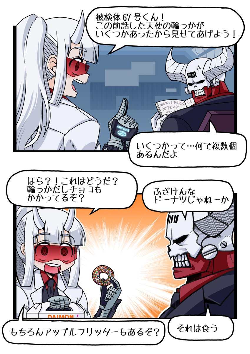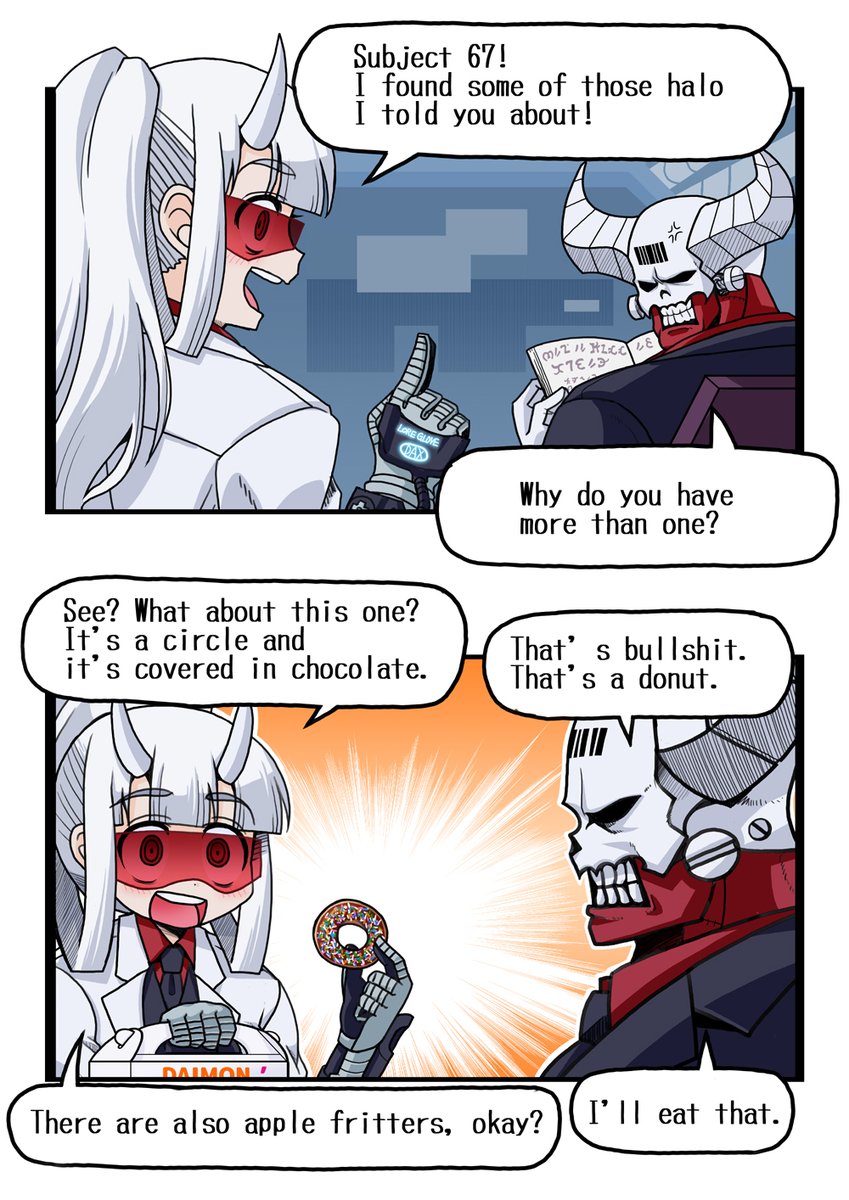 I translated it in a hurry, so there may be some strange English. We don't have Dunkin' Donuts here in Japan, but the power-breakfast-sandwich sounds really good! #Helltaker #Helltakerfanart