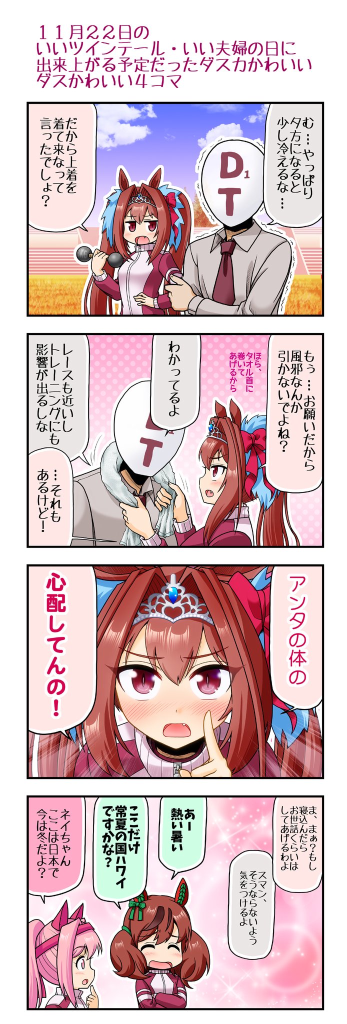 11月22日のいいツインテール/いい夫婦の日に完成させる予定でした。 ダスカはクリークと違うタイプの世話女房だと思いました。 #ウマ娘 #ダイワスカーレット #いいツインテールの日 #いい夫婦の日