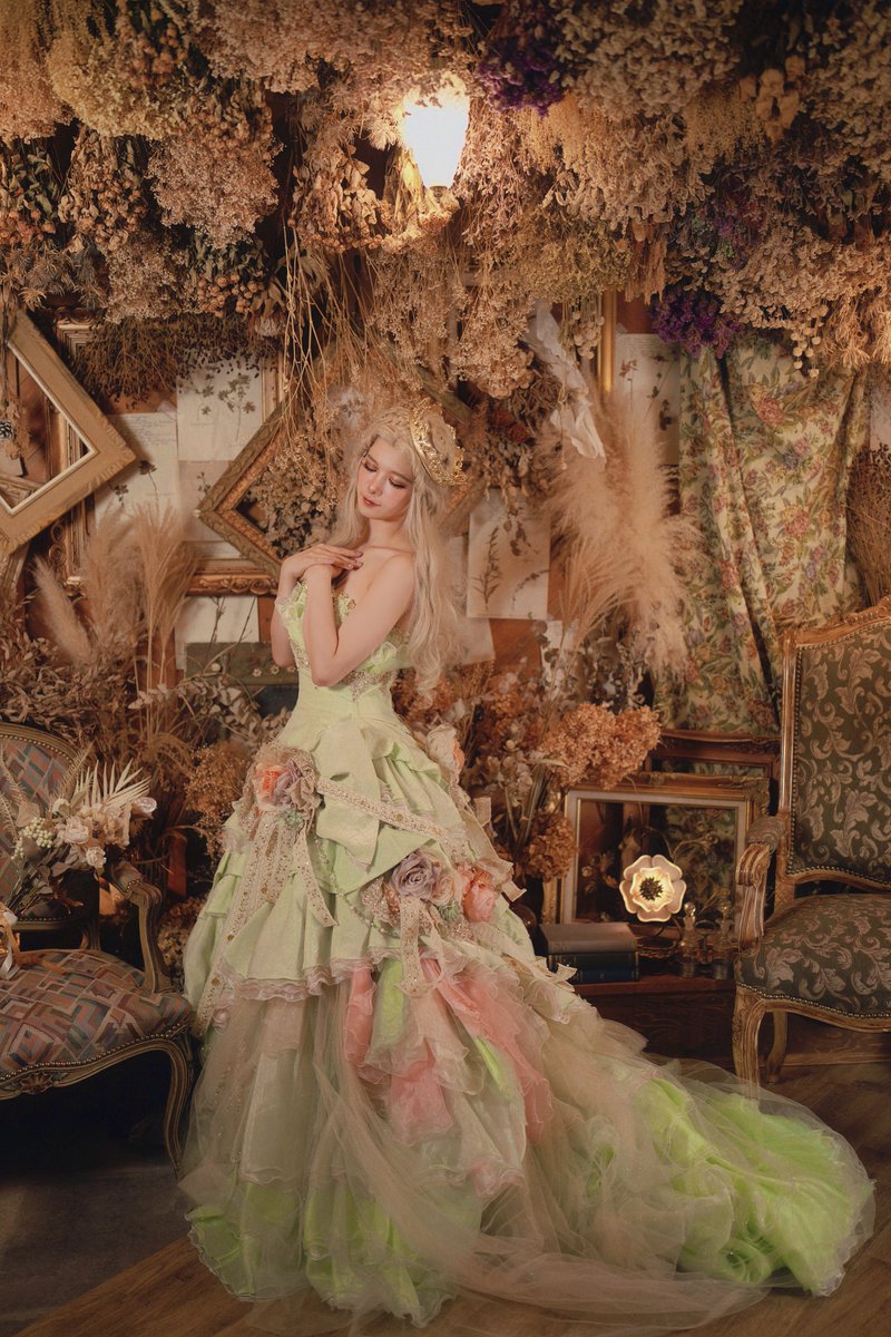 誕生日なので人生初、姫になってきました👑 獅子座のカラーのゴールドと8月の誕生石のペリドットカラーを基調としています💎🥀