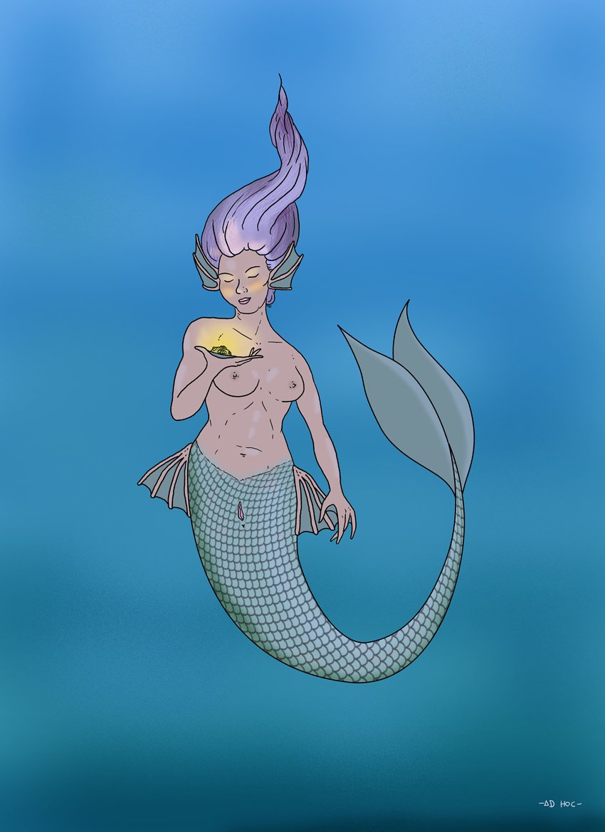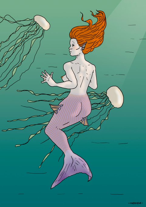 Aquí está mi contribución para el #mermay #mermay2022 me pedí el día 30 en @faneoweb. Mi #sirena como veis es mamífera y parece haber encontrado algo que se le ha caído a alguien...