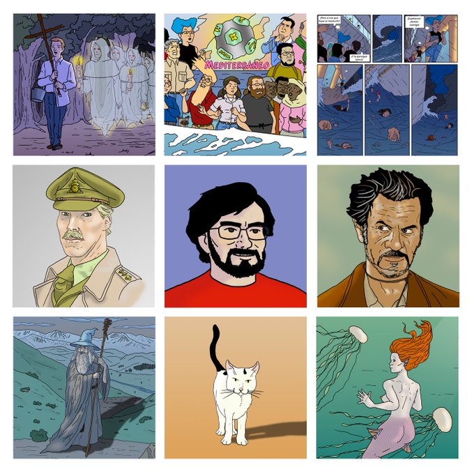 Hice esto de #artvsartist2021 #artvsartist Resumiendo el año: acabé Mediterráneo, hice algunas ilustraciones, y probé otros estilos fuera de mi zona de confort. Para 2022 habrá un nuevo webcomic, cuyo guión tengo ya hecho.
