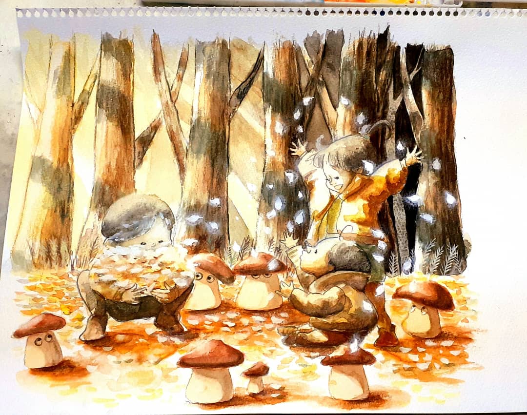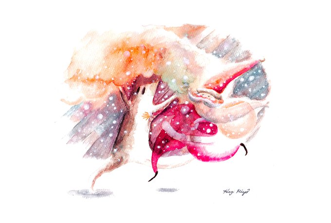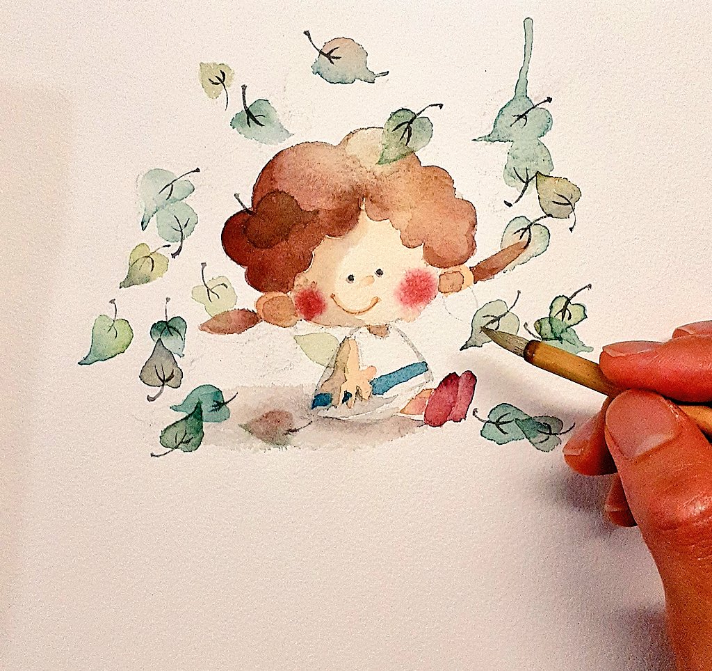 おばあさんからリンゴをもらったら、こどものぼくでもかぶりついちゃうよ。#1ページ絵本 #チャビーボーイ #イラスト #水彩 #illustration #watercolor #chubbyboy