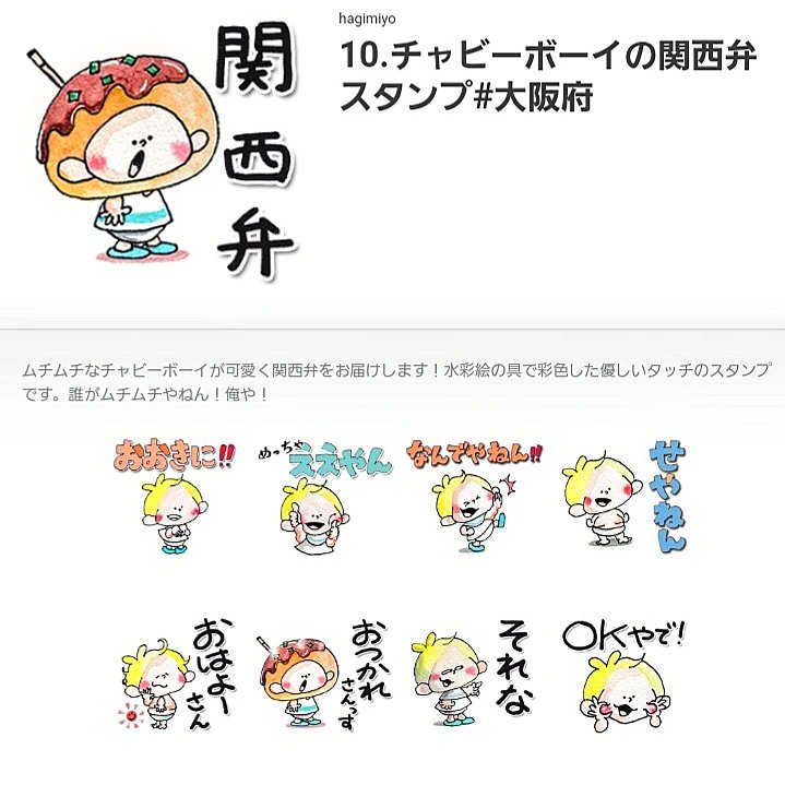 チャビーボーイの関西弁スタンプが出たよ!よろしく頼んどきます~!いつもおおきにぃ~ #誰がムチムチやねん #俺や #イラスト #水彩 #illustration #watercolor #pastel #チャビーボーイ #たこ焼き