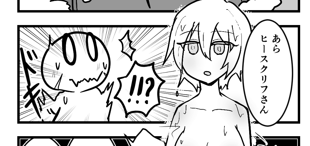 ⛈️が👻の裸を見る話。メフィの内部設定(個室のこととか)が出る前に書いたネタなので公式と色々異なります。男女シャワー室があってそれを利用している世界線です。⛈️→👻に恋愛感情はありません。生理現象です。 poipiku.com/270891/8919626…
