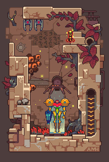 I took a little break from projects to do some #metroid fanart. Imagining a metroid prime game with GBA graphics. #pixelart #artistsontwitter #nintendo #FANART #FanArtFriday #pixel_art #ドット絵 #GameBoyAdvance #RetroGaming
