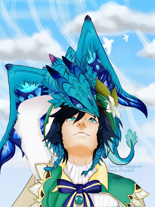 *Erratum* Version 1 for Venti contest : Venti petting his BFF or is it the other way around? Do you like it?🥰 #ventifanart #VentiGenshinImpact #GenshinImpact #Venti #fanart #fanartcontest #原神 #genshinimpactfanart #digitalartwork #digitalpainting #digitaldrawing #genshinart
