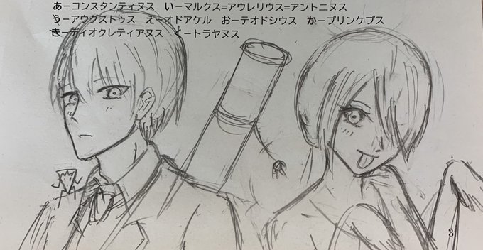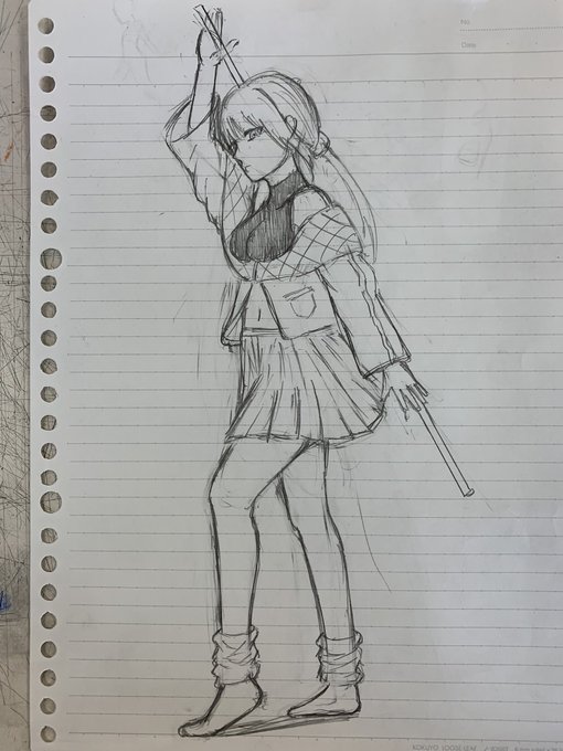 #しいなーと #金剛力也像 中間テスト中に描いた〜 剣持の竹刀袋?としぃしぃの服と手描けなかったのが悔しい