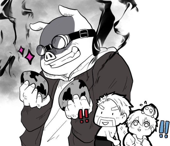 ポルノグラフィティの2012Sparkを聴いてたら不屈のぼんさんラクガキしたくなり、YOASOBIの怪物聴いてたらおらふくんラクガキしたくなりました。 #ぼんさん何してんすか #見るかもわからん