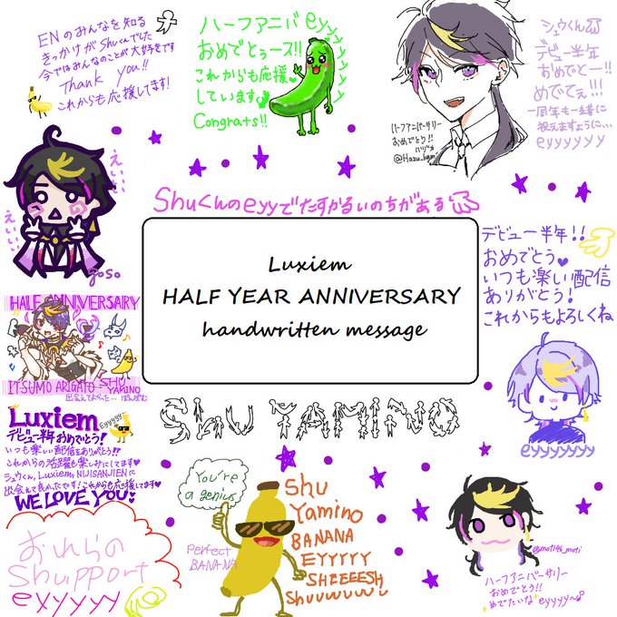 Dear Shu Your stream gives us energy and makes us want to do it all over again tomorrow! Thank you for your always enjoyable streams. Happy half-anniversary! Please continue to be a wonderful Shu. #ShuYamino #YaminoArt #Luxiem #luxiemhalfanniversary