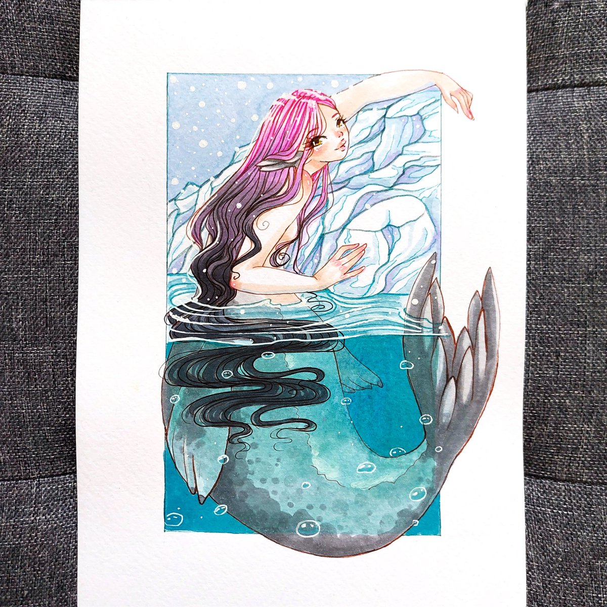 #Mermay 2022 ♡ Day 17 Selkie I am not using a prompt, just merming it up as i go ♡ Art done on A5 watercolour paper, this is a mixed media art piece using pencils, watercolour and markers. (CLAIMED) #mermaid #mermaidmay #mermay2022 #art #drawing #illustration