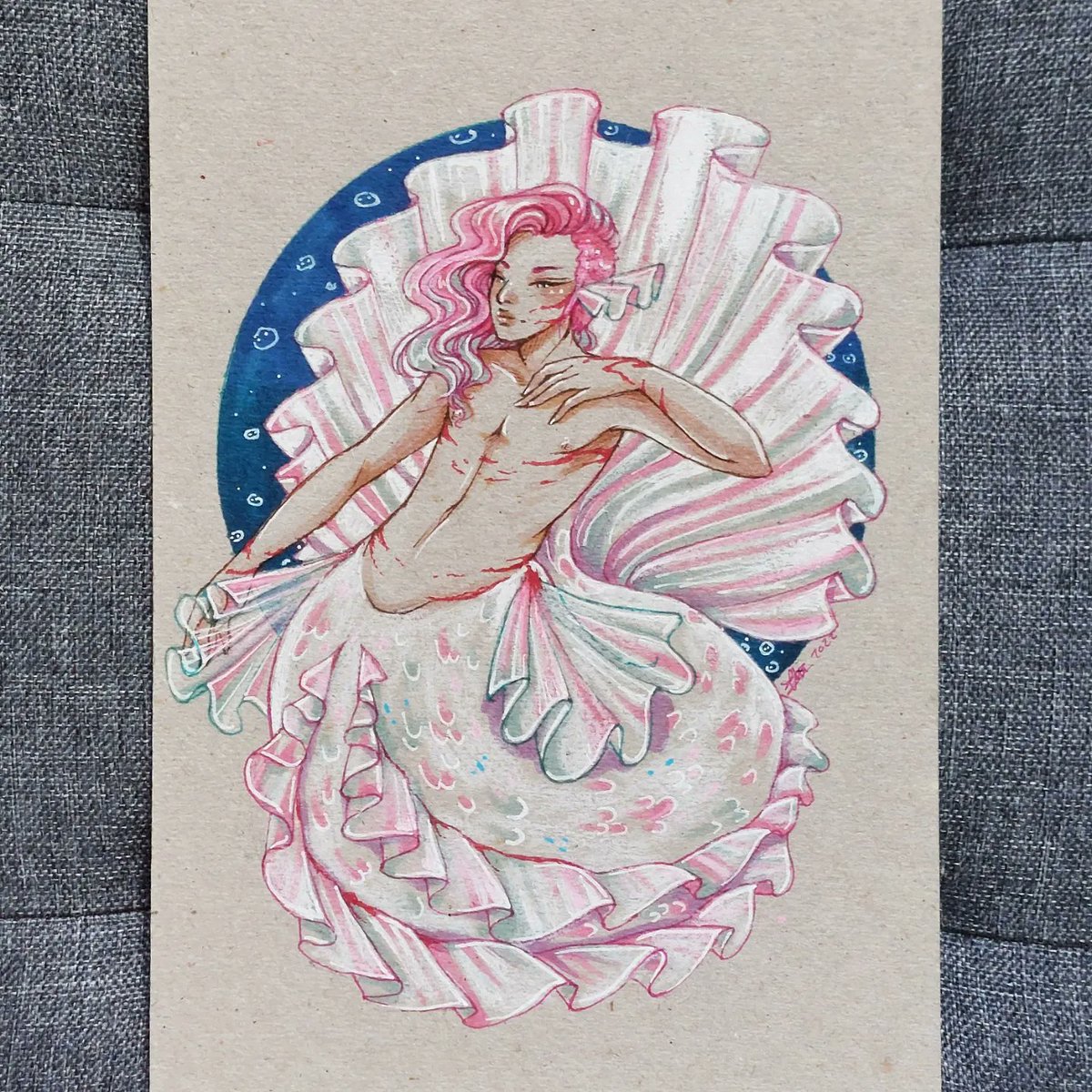 #Mermay 2022 ♡ Day 25 Hermit Crab I am not using a prompt, just merming it up as i go ♡ Art done on A5 watercolour paper, this is a mixed media art piece using pencils, watercolour and markers. #mermaid #mermaidmay #mermay2022 #art #drawing #illustration