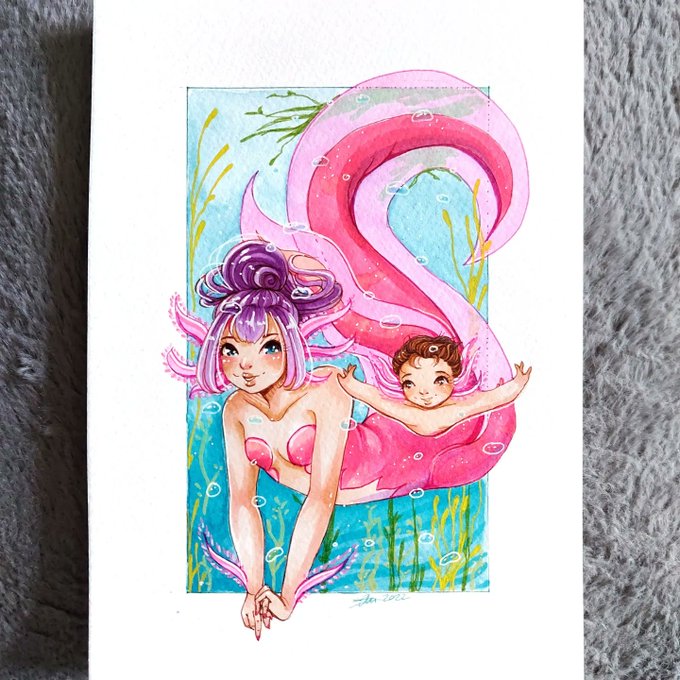 #Mermay 2022 ♡ Bonus mermay no.4 final A gentle love Art done on A4 hard board, this is a mixed media art piece using pencils, watercolour and markers. #mermaid #mermaidmay #mermay2022 #art #drawing #illustration #watercolourillustration #watercolour #ohuhumarkers #markers