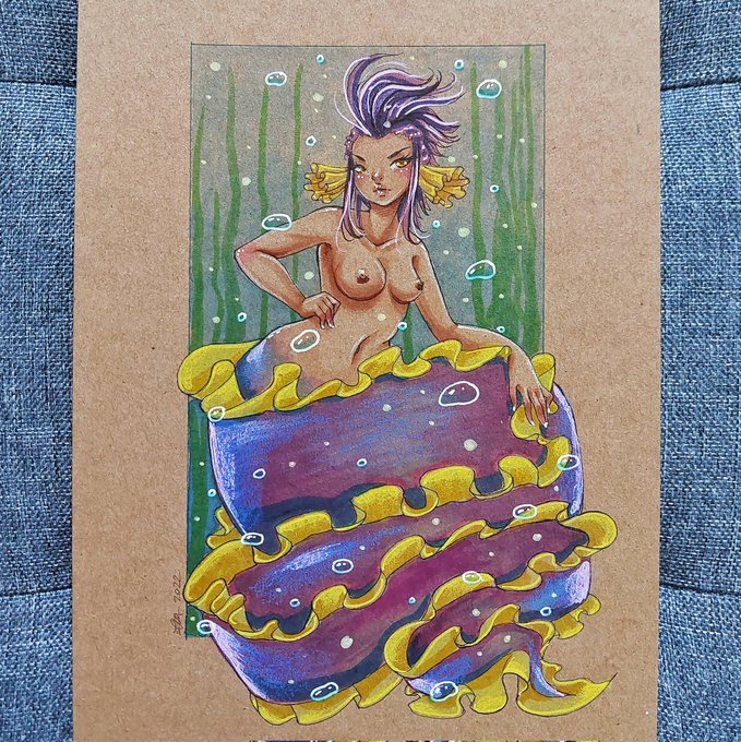 #Mermay 2022 ♡ Day 23 Crown of thorns They take over and kill reefs, what jerks. I am not using a prompt, just merming it up as i go ♡ Art done on A5 watercolour paper, this is a mixed media art piece using pencils, watercolour and markers. #mermaid #mermaidmay #mermay2022