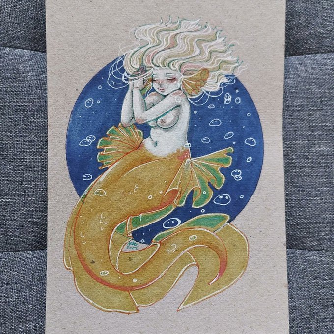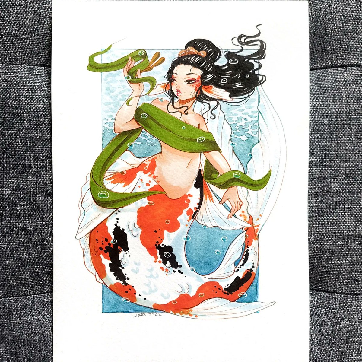 #Mermay 2022 ♡ Day 21 Koi I am not using a prompt, just merming it up as i go ♡ Art done on A5 watercolour paper, this is a mixed media art piece using pencils, watercolour and markers. (CLAIMED) #mermaid #mermaidmay #mermay2022 #art #drawing #illustration