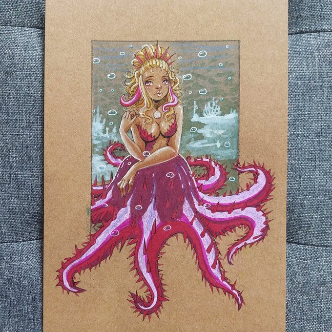 #Mermay 2022 ♡ Day 30 Kraken I am not using a prompt, just merming it up as i go ♡ Art done on A5 watercolour paper, this is a mixed media art piece using pencils, watercolour and markers. #mermaid #mermaidmay #mermay2022 #art #drawing #illustration #watercolourillustration