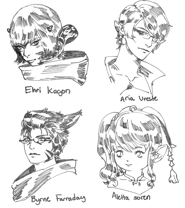 Some pen sketches to wind down, they're more simple than my main stuff but I still think theyre really fun to do :') good quick practice #solariumartparty #FFXIVART