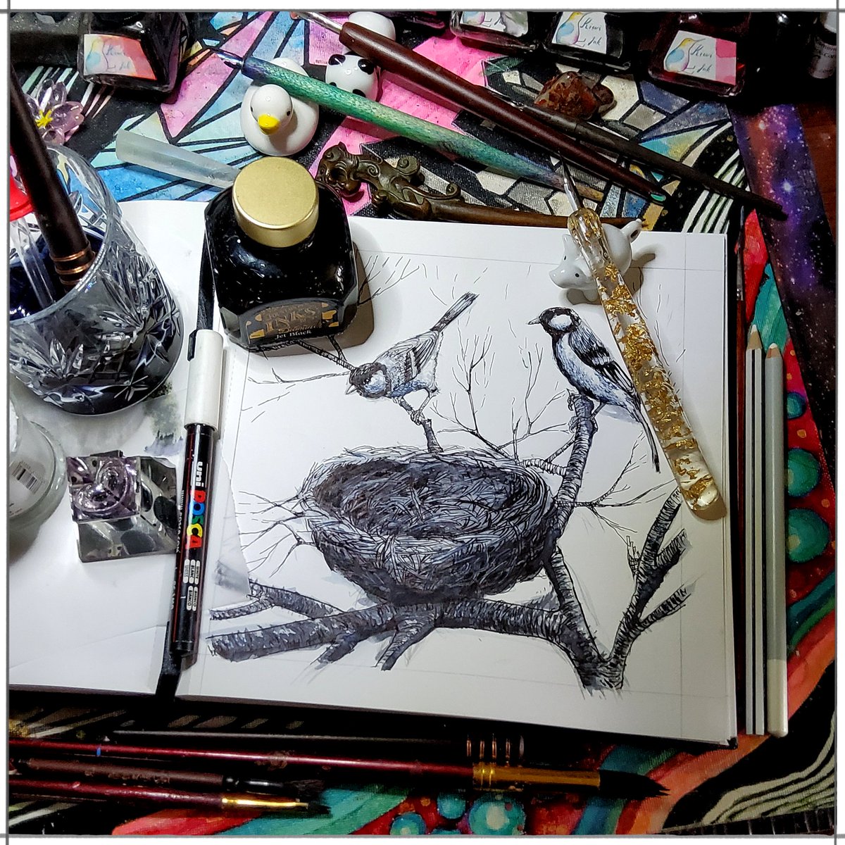 Inktober - Day 9 - Nest #inktober2022 #inktober #inktobernest #inktoberday9 #nest #ink #inkdrawing