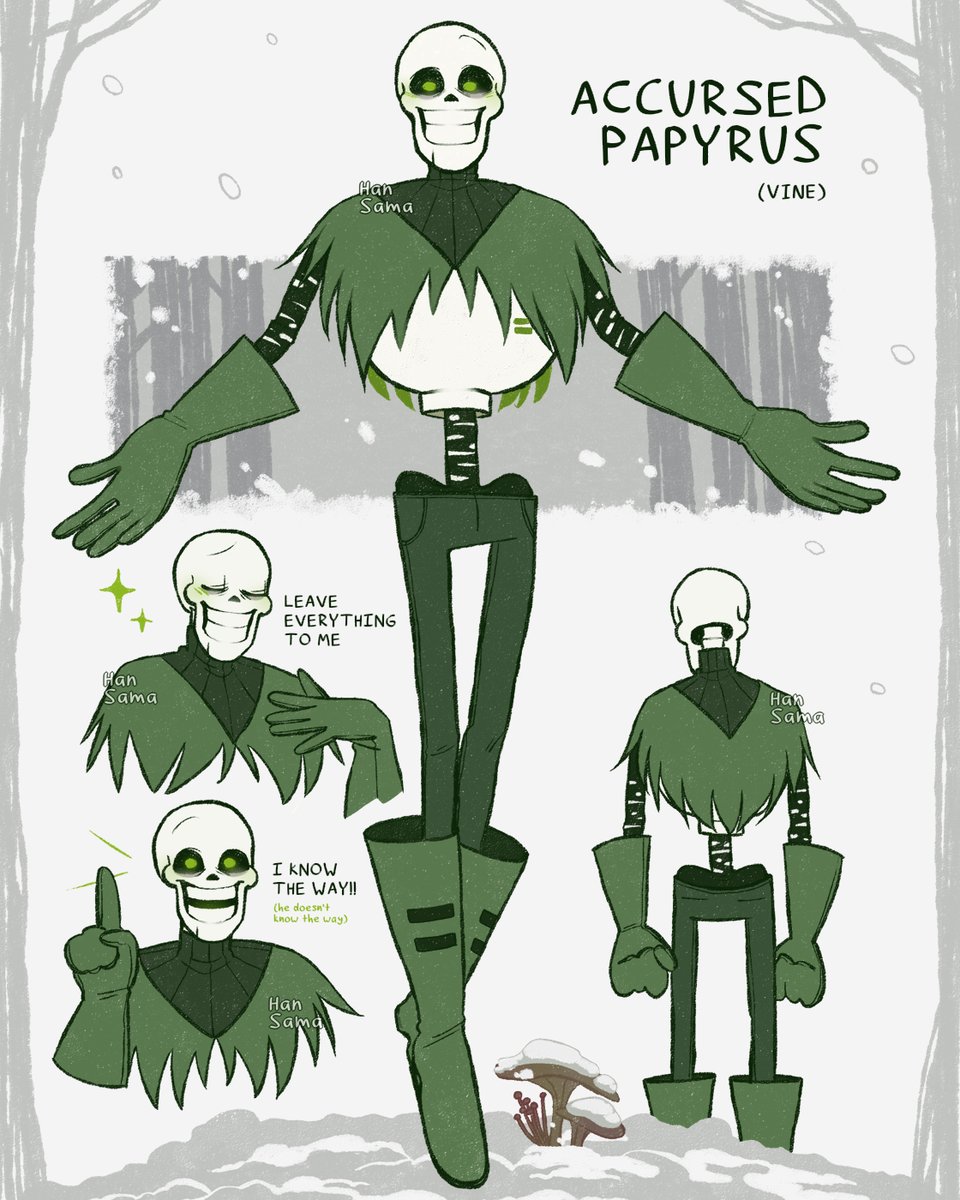[Accursed AU] Finally made a ref sheet of my skrunkly Papyrus (Vine) 💚 #undertale #undertaleAU